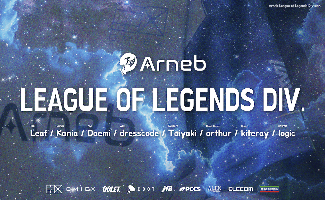 この度Arnebは、“League of Legends部門(以下LoL部門)” が始動しましたことをご報告します。